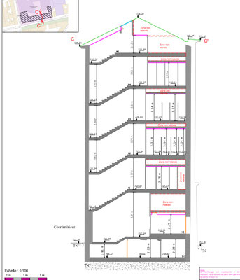 En plein coeur de Grenoble, sur un bâtiment emblématique, nous avons réalisé le levé complet, du sous-sol à la toiture.